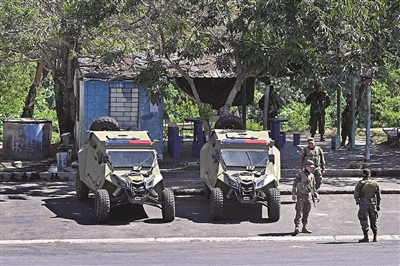 12月4日,士兵在萨尔瓦多索亚潘戈街头执勤。