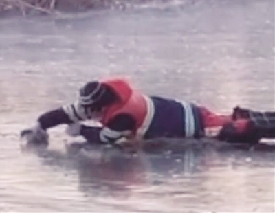 近日,北京圆明园,一只黑天鹅幼崽被冻在冰面上脱不开身。由于冰面太薄,站不住人,工作人员于是趴在冰上,匍匐前行。他小心翼翼,一点一点向前挪动,最终成功把小家伙救出。湖边的群众不断提醒工作人员注意安全,并为他加油鼓劲。