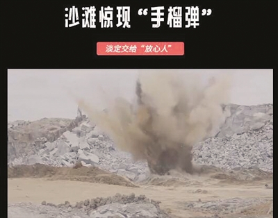 近日,家住福建石狮的赵先生在沙滩边发现一颗木柄手榴弹,意识到这可能是个“真家伙”,立即拨打110联系警察。目前,这枚手榴弹被妥善处置。警方提醒:发现炮弹等,应第一时间报警,由民警现场勘查后提取危险物品。