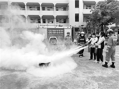 温岭市新河镇中学校长仇信介绍,学校聘请新河镇专职消防队员为兼职教员,定期到学校开展消防安全培训,在主题活动日开展内容多样的大型综合性逃生疏散演练。每年开学,入学新生和入职新教师都要到校科普馆接受一场系统化的安全知识培训,体验逃生通道、掌握消防器材使用方法。同时,学校还在校园宣传栏设置消防安全教育宣传栏、安全警示标语,在校园内设置消防安全展板;布置寒、暑假消防作业;下发签订安全告知书;在教学楼和学生宿舍,张贴消防安全管理规定和逃生疏散示意图;经常性排查宿舍楼内的消防设施、寝室内的用电情况等。