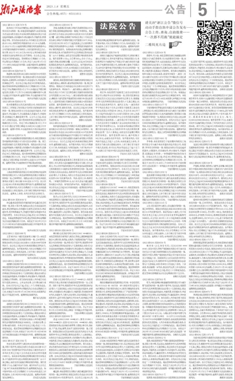 程飞:本院受理杭州杭鼎融资担保有限公司与被告程飞追偿权纠纷一案,因你下落不明,无法送达,现依照《中华人民共和国民事诉讼法》第九十五条的规定,依法向你公告送达起诉状副本、开庭传票、应诉通知书、举证通知书、诉讼须知、诉讼风险提示书、廉政监督卡、外网查询告知书等有关文书。原告诉请:1、判令被告程飞偿还原告支出的代偿款37 125.2元,赔偿原告代偿款的资金占用费,按同期全国银行间同业拆借中心公布的贷款市场一年期报价利率的四倍按实计付至款项实际偿清之日;2、判令被告程飞支付原告支出的律师费3 500元;以上暂合计为40 625.2元。3、确认原告对案涉车牌号为浙B997KP(车架号LOWEE4A42FF211620,发动机号1505755265)哈弗牌汽车的折价、拍卖或变卖所得价款享有优先受偿权。4、判令本案诉讼费由被告承担;自发出公告之日起经过三十日即视为送达。提出答辩状和举证的期限均为公告期满后十五日内。本院定于2023年3月2日09时30分在本院马渚人民法庭第二审判庭开庭审理,逾期本院将依法判决。余姚市人民法院