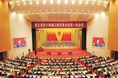 | 1月12日,浙江省十四届人大一次会议在省人民大会堂开幕。 《浙江日报》记者 魏志阳 周旭辉 俞碧寅 摄 |