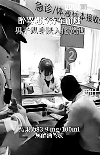 近日,四川泸州,交警在开展检查时,遇一摩托车驾驶人弃车逃避检查,交警一路追踪,发现该男子竟在寒冬中跳进化粪池内。经交警劝导后男子最终从化粪池内爬出,待其更衣后进行血液酒精检测,结果为83.9mg/100ml,属醉酒驾驶。男子因涉嫌危险驾驶已被刑事立案,案件正进一步办理中。交警提醒:逃避检查难逃责,酒后拒驾才安全!