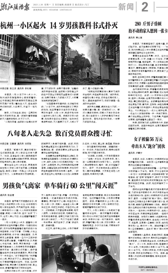 杭州一小区起火 14岁男孩教科书式扑灭