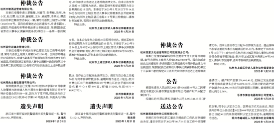 本委已受理申请人季雅雅、刘春花、张青梅、吴刚、朱小友、杜文霞、杜文娟、唐毓敏、王永、钟溪雯、李燕云、谭波俊诉你单位集体劳动争议一案,案号为浙杭上城劳人仲案(2023)104号。因向你邮寄送达应诉通知书、申请书副本、证据及开庭通知书等仲裁法律文书被退回,现根据《浙江省劳动人事争议调解仲裁条例》第四十一条第一款的规定,向你依法公告送达上述仲裁法律文书。自本公告发布之日起10日即视为送达。提出答辩书和举证期限为本公告期满后的15日内。本委定于2023年3月23日下午14点30分在杭州市上城区劳动人事争议仲裁委员会开庭审理(地址:杭州市上城区望江东路6-1号第三仲裁庭),请准时参加庭审,否则本委将依法缺席裁决。