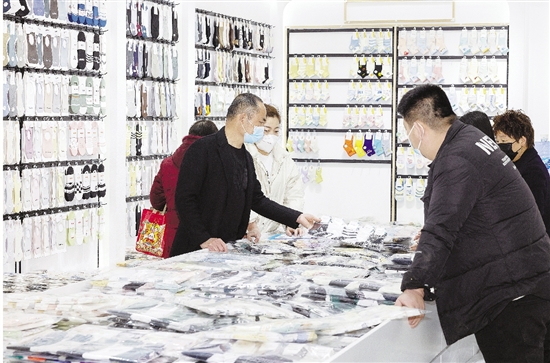 2月1日,有“国际袜都”之称的诸暨市大唐街道热闹开市。一大早,中国大唐袜业城的经营者纷纷摆出春夏季的袜子新品,客商涌入市场采购,抢占市场先机。