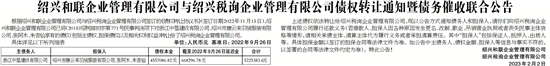 绍兴和联企业管理有限公司与绍兴税询企业管理有限公司债权转让通知暨债务催收联合公告