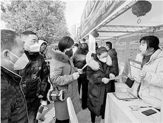 1月30日,在“杭州—广元”东西部劳务协作专场招聘会现场,招聘人员正在向求职者介绍岗位。 (杭州市人力社保局供图)