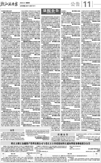 转让方浙江金越资产管理有限公司与受让方方春霞债权转让通知暨债务催收联合公告