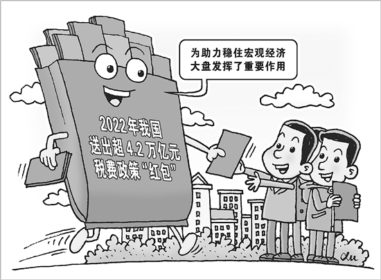 国家税务总局副局长王道树近日介绍,2022年全年,我国新增减税降费及退税缓税缓费超过4.2万亿元,为助力稳住宏观经济大盘发挥了重要作用。