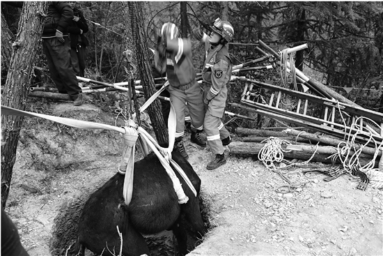 骡子掉入4米深坑 村民苦救一天未果