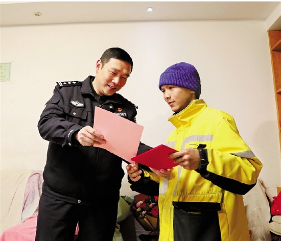 本报讯 “经过我们调查核实,确认周家其的行为为见义勇为。”2月2日下午,嘉善县公安局党委副书记、政委茅磊来到救人外卖小哥周家其家中,为他送上了见义勇为确认证书和慰问金。