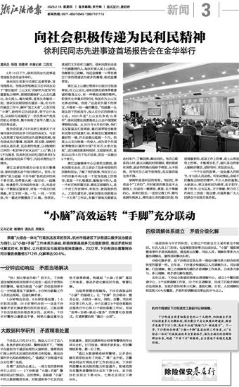 2月14日下午,徐利民同志先进事迹首场报告会在金华举行。
