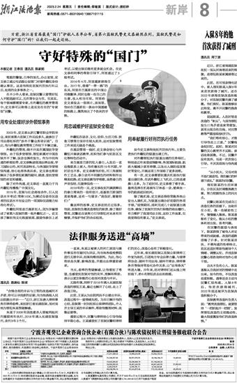 浙江法制报 新岸 00008 守好特殊的“国门” 2023-02-24 浙江法制报2023-02-2400007;浙江法制报2023-02-2400008;25457841;25457705| 2 2023年02月24日 星期五