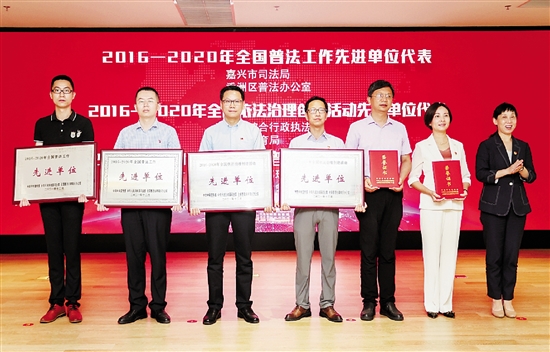 2019年,嘉兴市荣获全国“七五”普法中期先进城市;2021年12月,嘉兴市司法局被中宣部、司法部和全国普法办联合表彰为“七五”全国普法工作先进单位;2022年1月,嘉兴市司法局被省两办表彰为全省“七五”普法工作先进集体;2022年12月,嘉兴市司法局普法与依法治理处被省司法厅通报表扬为民主法治村(社区)创建工作方面“全省法治建设工作成绩突出集体”。