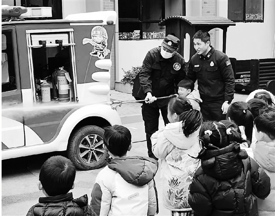 近日,杭州市上城区清波司法所联合街道平安办,在小世界幼儿园开展消防安全“开学第一课”活动,提高孩子的消防安全意识和自防自救能力,筑牢校园安全防火墙。 通讯员 杨春艳