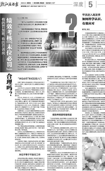 “考核方法不合理、不科学,就会出现为了处罚而处罚。”周伟权认为,绩效考核的目的是让管理者对员工作出客观评价,如果员工对评为前几名不积极,而对评为后几名争论不休,说明本末倒置了。他举例说,有的部门私下约定轮流“受罚”,有的部门要求每年必须有两人评为末位的“合格”。