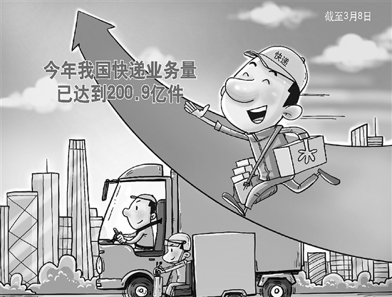 国家邮政局监测数据显示,截至3月8日,今年我国快递业务量已达到200.9亿件。