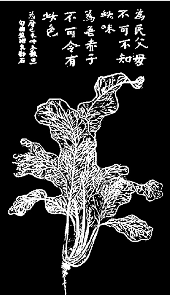 | 《白菜碑》拓本。徐九思在句容为官时厉行节俭“画菜辅官”传为美谈,后来笪继良出任江西铅山知县时立此《白菜碑》。 资料图片 |
