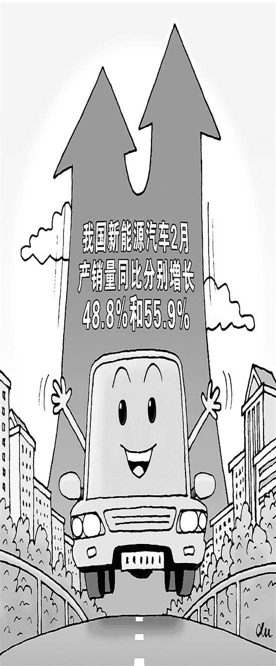 中国汽车工业协会近日发布数据显示,2月,我国新能源汽车产销量分别达55.2万辆和52.5万辆,环比分别增长30%和28.7%,同比分别增长48.8%和55.9%,市场占有率达26.6%。