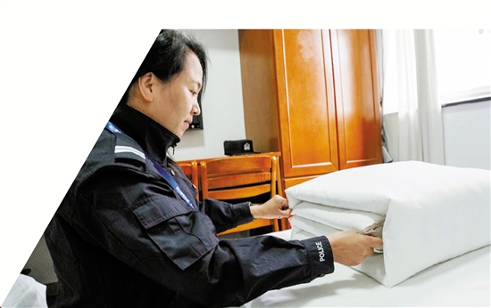 | 将被子叠成豆腐块,摆放得整整齐齐。 |