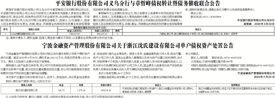 根据平安银行股份有限公司义乌分行与章哲峰签订的《债权转让协议》,平安银行股份有限公司义乌分行将其对公告清单所列借款人享有的主债权及借款合同、保证合同、抵质押合同项下的全部权利,依法转让给章哲峰。平安银行股份有限公司义乌分行特公告通知各借款人、担保人,以及借款人、担保人因各种原因发生更名、改制、歇业、吊销营业执照或丧失民事主体资格等情况的相关承债主体或清算主体。