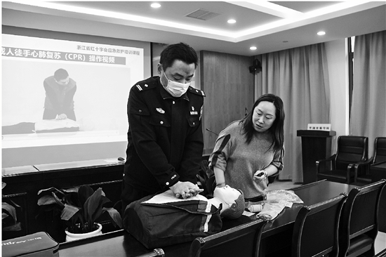 近日,平湖市看守所邀请市红十字会老师上门开展“心肺复苏和创伤救护”培训,提升民警急救能力。 通讯员 谢远远