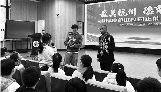 日前,由杭州市文明办、市教育局联合主办的“最美杭州 德育少年”——道德模范进校园正能量宣讲活动走进杭州市长寿桥小学。第二届杭州市道德模范、杭州市消防救援支队特勤大队副大队长程本为师生们带来一堂生动的消防安全教育课。
