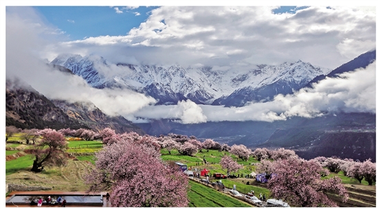 清明时节,西藏米林市派镇索松村的桃花进入盛放期,吸引游客前来观赏、拍摄。