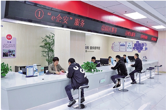 第一个“试水”的派出所,便是获评全省首批“枫桥式公安派出所”的织南派出所,该所率先打造了“e企安365”东尼电子员工服务中心,入驻公安、街道、社区等6个部门窗口,一站式做好员工入离职手续、居住证登记等工作,全力解决企业员工办事多头跑、安全防范难等问题。