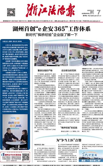 “织里要实现长治久安,关键在于治理方法。我们深化警源治理工作,探索构建‘e企安365’工作体系,打造‘枫桥经验’企业版,实现了警情同比下降11.2%,矛盾不出企业,就地化解。”在张宏亮看来,从太湖南岸一条0.58平方公里的“扁担街”到如今的“中国童装名镇”,从以前的治安乱点到如今“秩序好、出事少、社会稳定、群众满意”的浙江治理示范点,织里交出了经济发展和社会治理的高分答卷。