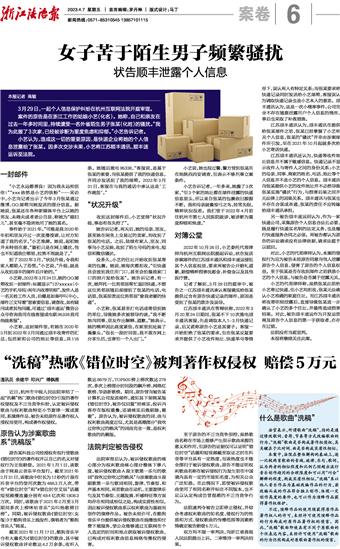 “洗稿”热歌《错位时空》被判著作权侵权 赔偿5万元