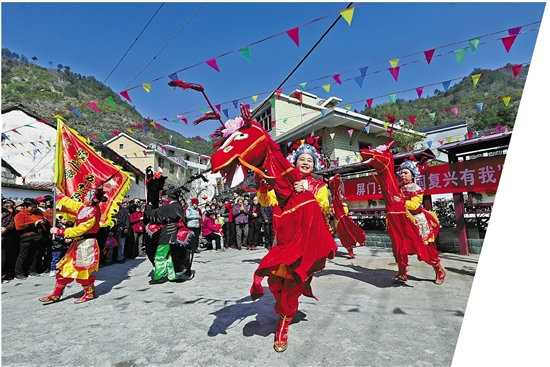 | 2023年3月10日在杭州市淳安县屏门乡屏前村传统庙会上拍摄的竹马表演 |