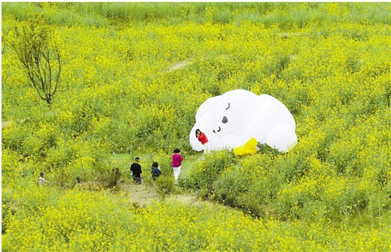 | 2023年4月3日拍摄的游客在绍兴市上虞区覆卮山古梯田间留影 |