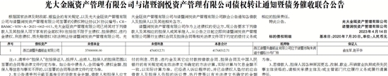 光大金瓯资产管理有限公司与诸暨润悦资产管理有限公司债权转让通知暨债务催收联合公告