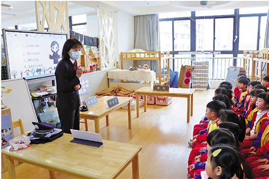 近日,温岭法院民四庭干警郑彬琪来到市机关幼儿园,给小朋友们带去了一场生动活泼的普法小课堂,在幼小的心灵里播种下法治的种子。 通讯员 金宇婷 摄