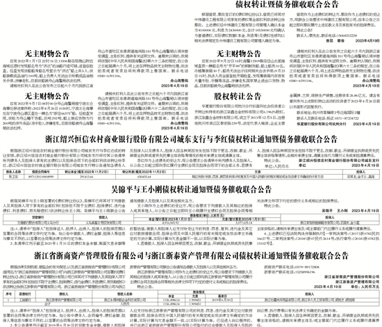 浙江浙泰资产管理有限公司作为上述债权的受让方,现公告要求下列借款人及其相应的担保人或其承继人,从公告之日起立即向浙江浙泰资产管理有限公司履行主债权合同及担保合同等相关法律文件项下约定的偿付义务或相应的担保责任。