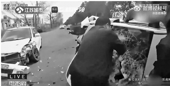 近日,江苏一路口发生两辆汽车相撞的事故,其中一辆车发生侧翻,驾驶员被困车内。此时,一名民警和两名辅警路过,他们立刻下车与附近群众一起展开救援。由于侧翻车辆的车门无法打开,大家齐心协力将前挡风玻璃敲碎。辅警钱坤徒手撕开玻璃,预留出更大的逃生缺口,成功地将受伤司机抱出,转移至路边安全地带。随后,伤者被120救护车送往医院救治。