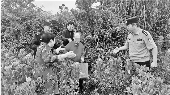 近日,台州市公安局椒江区分局大陈派出所接到一位阿婆的报警求助,说和她一起上山上坟的83岁老伴走丢了,“我马上叫来亲戚朋友、邻居帮忙找,但是,找了3个多小时了也没找到……”民警立即联系当地镇政府工作人员,一起上山寻找,半个小时后,在一处山崖边找到了老人,并将他平安带下了山。