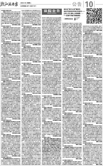 南京鼎春绿化工程有限公司:原告余姚市添意建筑材料经营部与被告南京鼎春绿化工程有限公司买卖合同纠纷一案,现已审理终结。现依照《中华人民共和国民事诉讼法》第九十五条的规定,向你公告送达(2022)浙0281民初5337号民事裁定书。裁定如下:(2022)浙0281民初5337号民事判决书第一页第十五行中的“法定代表人:孙自林”应更正为“法定代表人:孙才周”。自发出本公告之日起经过30日即视为送达。 余姚市人民法院