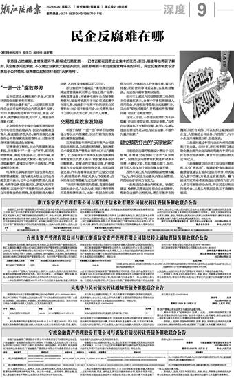 二是适时通过专项行动加大对民企腐败打击力度。2022年,浙江省多部门通过助企惠企提升企业风险防范能力专项行动打击涉企经济案件,累计为企业挽回损失近26亿元。