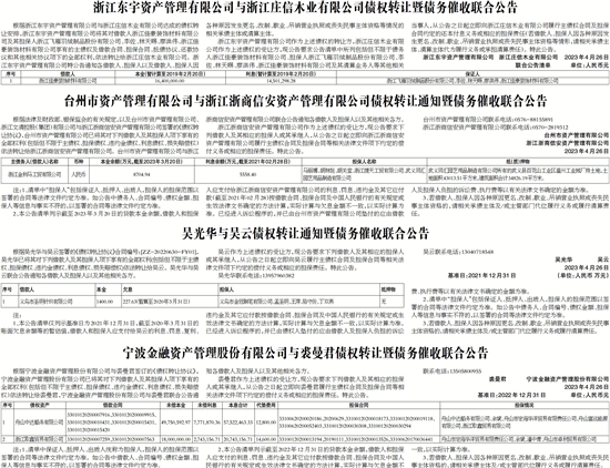 台州市资产管理有限公司与浙江浙商信安资产管理有限公司债权转让通知暨债务催收联合公告