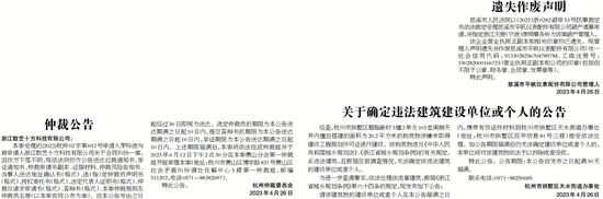本委受理的(2022)杭仲02字第692号申请人茅玲波与被申请人浙江数艺十方科技有限公司关于合同纠纷一案,因你方下落不明,现依法向你方公告送达应裁通知书、举证通知书、仲裁申请书副本、证据材料、仲裁风险告知书、当事人送达地址确认书(格式)、选(指)定仲裁员声明书(格式)、授权委托书(格式)、法定代表人证明书(格式)、仲裁反请求申请书(格式)、答辩书(格式)、本委仲裁规则及仲裁员名册(以本委官网公布为准)。自本公告发出之日起经过30日即视为送达。选定仲裁员的期限为本公告送达期满之日起10日内,提交答辩书的期限为本公告送达期满之日起10日内,举证期限为本公告送达期满之日起10日内。上述期限届满后,本委将依法组成仲裁庭并于2023年6月12日下午2点30分在本委萧山分会第一仲裁庭开庭审理本案(地址:杭州市萧山区博学路837号萧山区社会矛盾纠纷调处化解中心5楼第一仲裁庭,邮编311202,电话0571-88382697)。