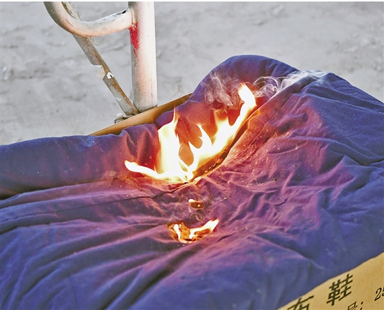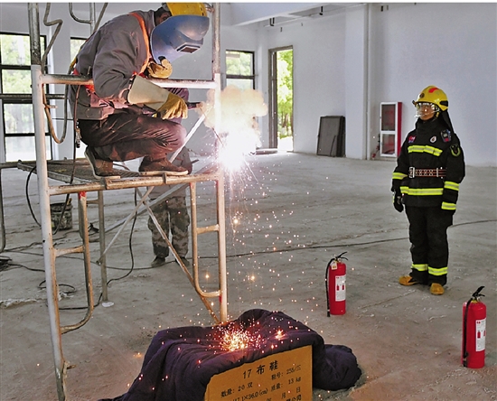 约10秒钟后,下方的棉被上出现微弱的明火,现场消防员立即示意停止作业,并上前将明火扑灭。消防员告诉记者,根据《焊接与切割安全》GB9448-1999国家标准,焊接、切割作业的防火要求是距离不少于10米,确实无法达到安全标准的,需向职能部门进行申请,在做好安全防护措施的情况下进行施工作业,“但实际工作中,这项措施往往被忽略,导致不少火灾惨剧的发生”。