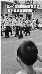 近日,云南河口出入境边防检查站民警普春华和同事列队前往岗位,5岁的儿子米乐在“五一”假期前来看望。米乐站在路边向坚守岗位的爸爸敬礼,爸爸也向儿子回礼。网友:警察叔叔辛苦了,这对父子的敬礼太暖了!
