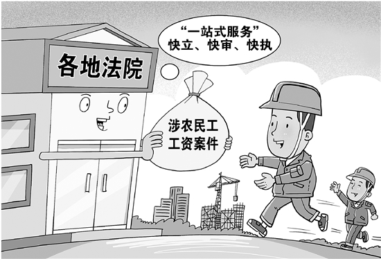 记者近日从最高人民法院获悉,在涉农民工工资案件专项执行行动中,各地法院提供一站式服务,强化繁简分流,对案件事实清楚、法律关系明确的案件,积极运用简易程序和小额速裁程序,快立、快审、快执。