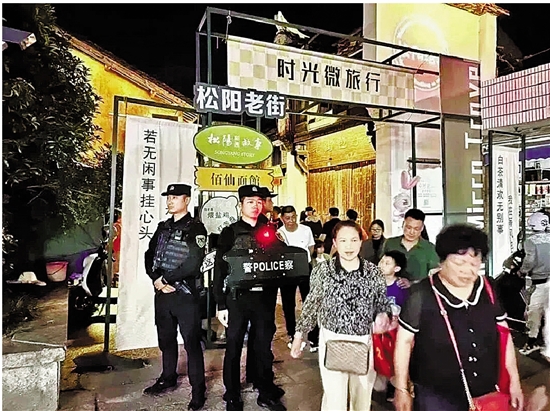 ①松阳的明清古街是网红“打卡地”。松阳县公安局西屏派出所联合巡特警大队每天投入60余名警力,在人员密集区及重点时间段,不间断开展巡逻防控,最大限度提升见警率与管事率。