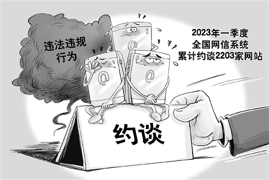 记者近日从国家网信办获悉,2023年一季度,全国网信系统进一步加大网络执法力度,健全制度机制,增强工作队伍,规范网络执法行为,持续推进“清朗”系列专项行动,依法查处网上各类违法违规行为,累计约谈网站2203家。