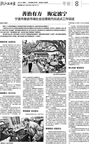 以试点验收为新起点,宁波不断积累、总结和推广基层治理经验,运用法治方式和群众工作方法解决群众合理诉求、化解矛盾纠纷,保持社会和谐稳定,进一步提升人民群众的获得感、幸福感、安全感,使高水平民生服务成为高质量发展的最大亮点。
