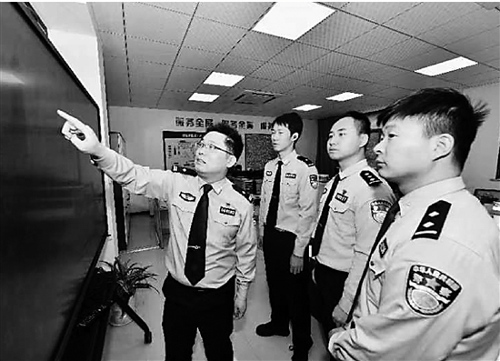 | 蒋钢锋在大屏幕前给战队民警分析讲解侦查思路 |